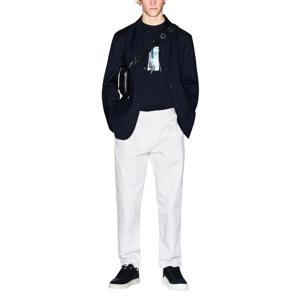 The Armani Exchange men’s blazer jacket, model XM001194 AF12041, is the perfect blend of modern elegance and everyday comfort. Made from a blend of 80% polyester and 20% viscose, this jacket offers a soft feel and structured fit, enhancing any masculine silhouette. The design features a front button closure in matching tones, a classic collar, and three patch pocketsâone on the chest and two on the sidesâcombining functionality with contemporary style. Its clean, linear cut makes this blazer suitable for both formal and casual looks, perfect for the office, special events, or adding a sophisticated touch to your daily outfit. Armani Exchange quality ensures long-lasting wear and attention to detail, making this a versatile piece for every season.