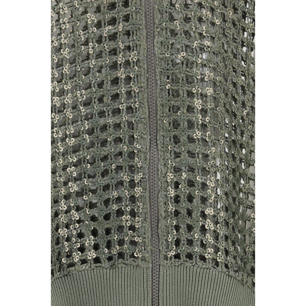 The Dazzling Net Embroidery Cardigan in silk and linen by Brunello Cucinelli combines fine materials and refined craftsmanship in a light and sophisticated design. Featuring a net weave, it has a double-slider zip closure, ribbed collar, dropped shoulders, and ribbed cuffs and hem, striking a perfect balance between comfort and contemporary style.