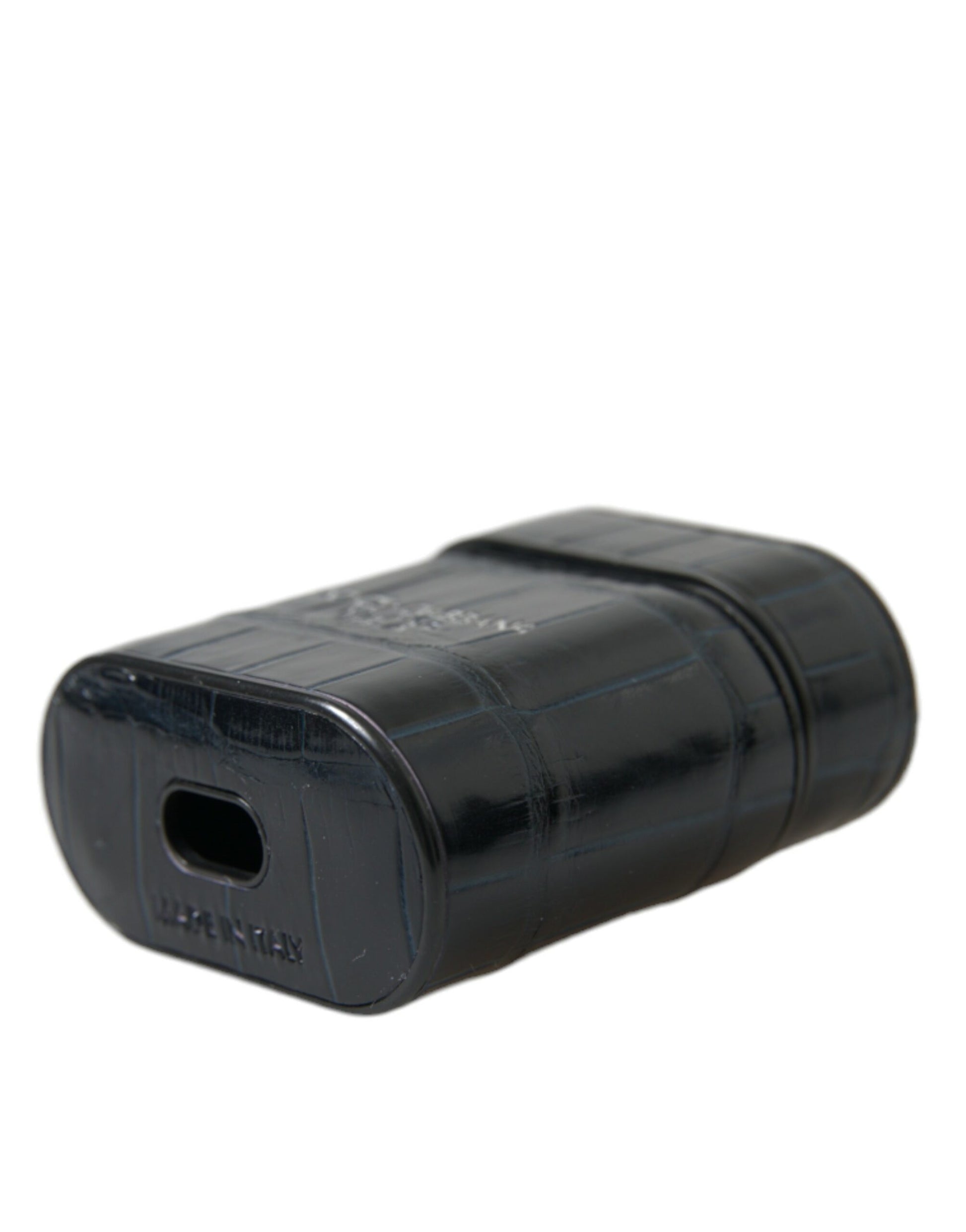 Dolce & Gabbana Black Crocodile Leather Silver Metal Logo Airpods Case
