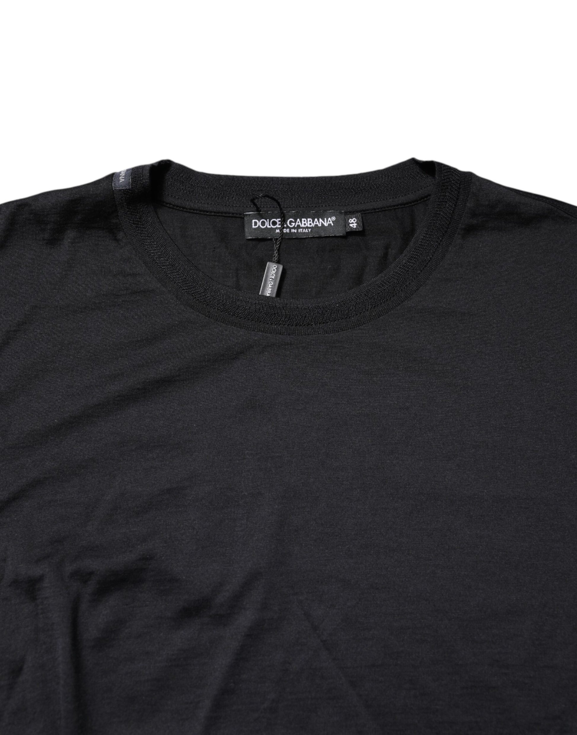 Dolce & Gabbana Dark Blue Silk Crew Neck Men Pullover Sweater