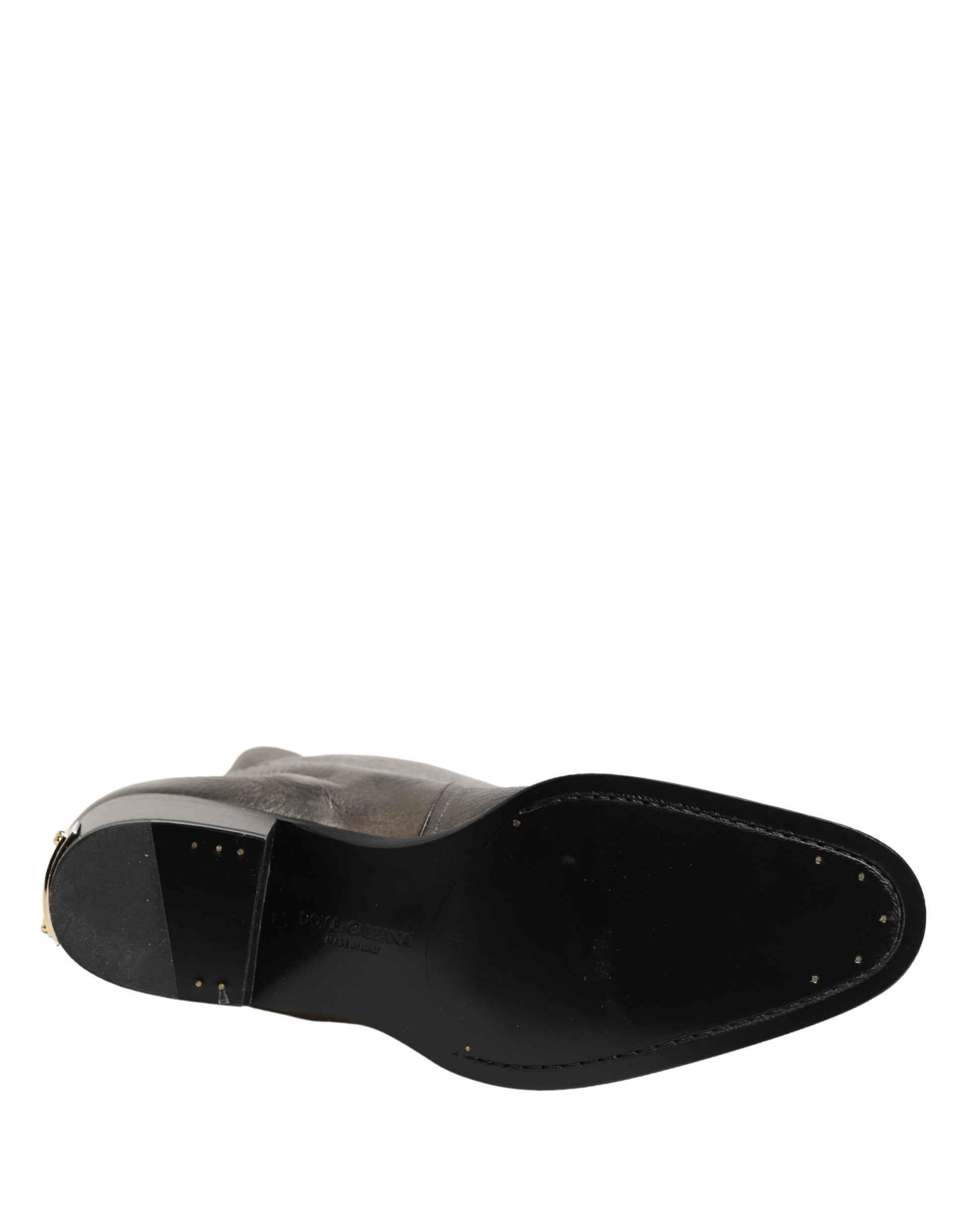 Dolce & Gabbana Metallic Silver Leather Knee High Boots Shoes