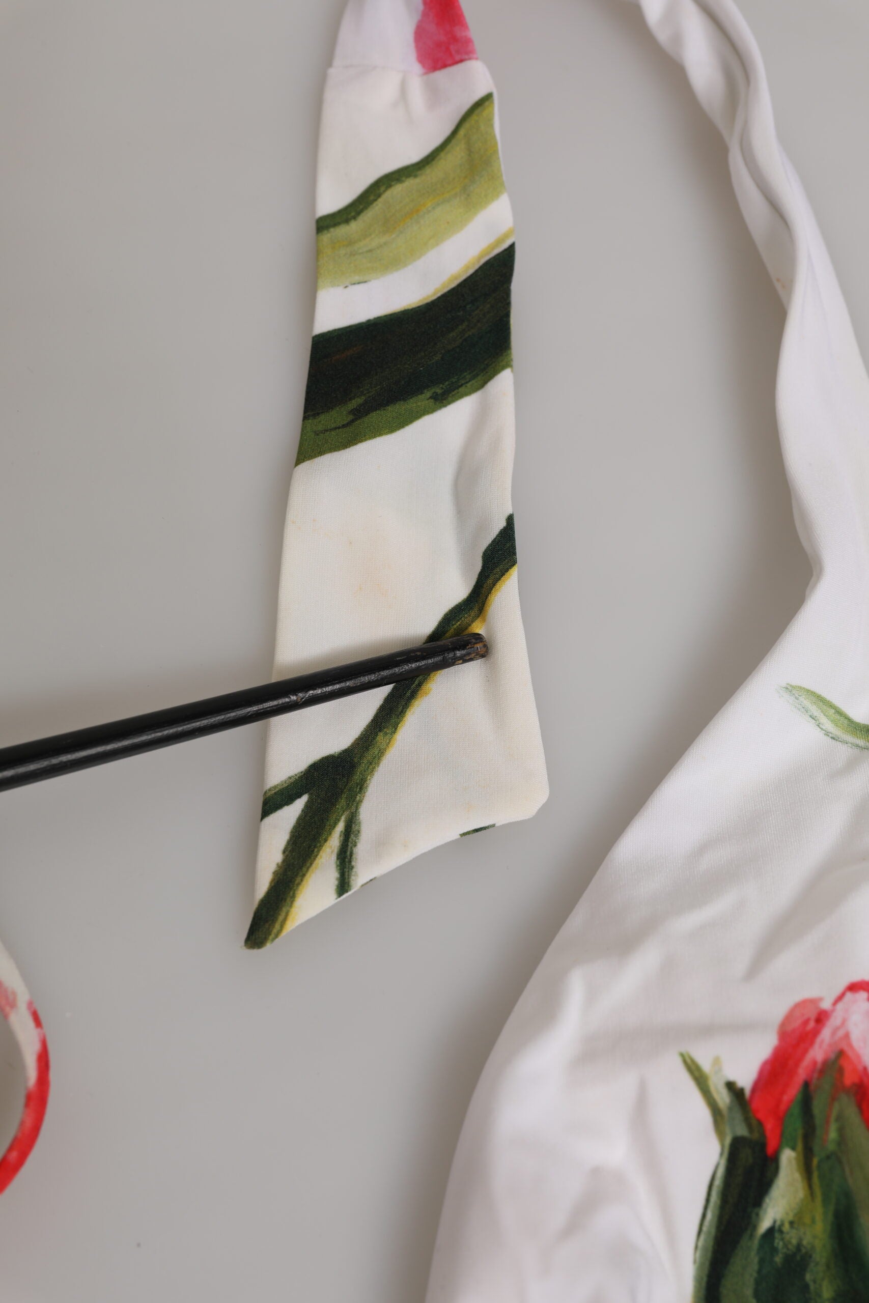 Dolce & Gabbana White Floral Swimsuit 2 Piece Top Bottom Swimwear