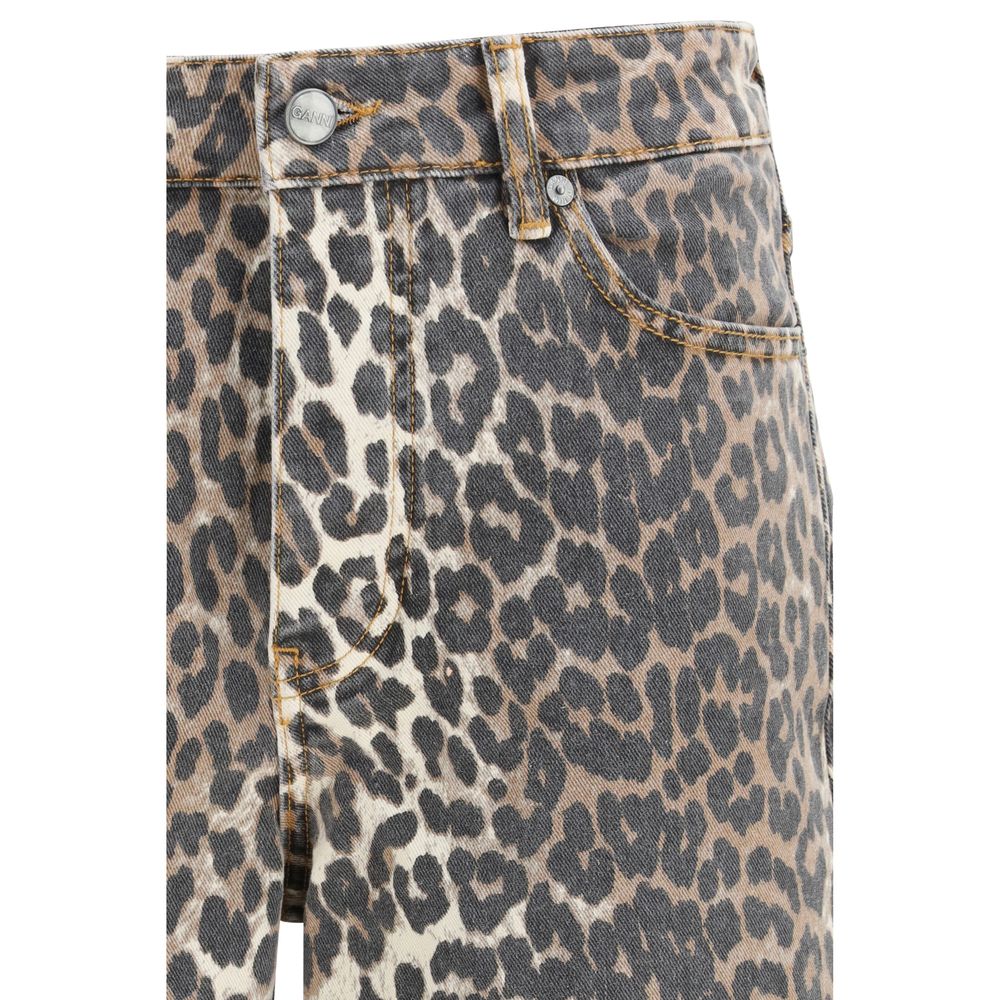 The animal print Jeans by Ganni are a bold and trendy piece, featuring a relaxed fit with a straight, wide leg that guarantees comfort without compromising on style. The classic five-pocket design is completed by a zip and button closure. The GANNI logo on the back pocket adds a distinctive and modern detail, making these jeans a unique piece for those who love to be daring with a look that combines practicality and originality. Ideal for those looking for a touch of personality in their casual wardrobe.