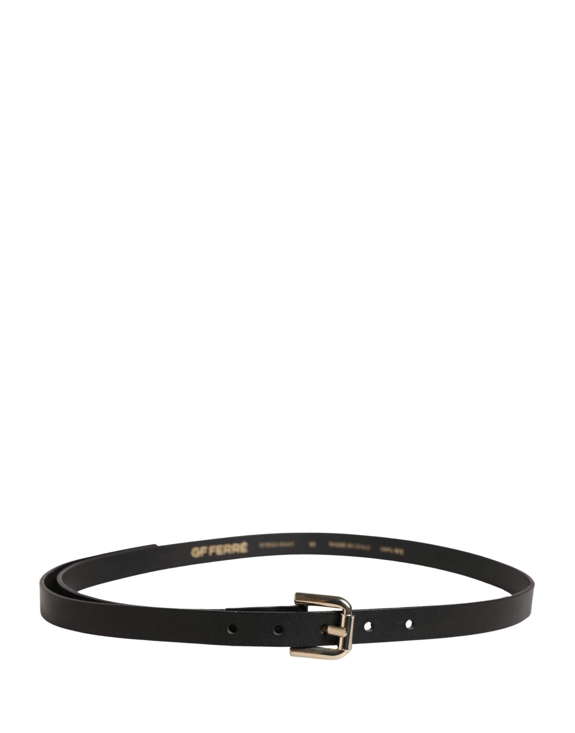 GF Ferre Black Leather Slim Gold Tone Buckle Waist Men Belt