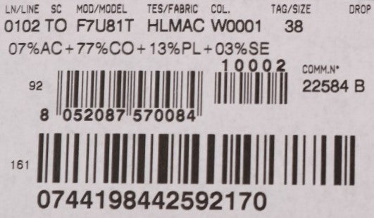 Material: 77% Cotton, 13% Polyester, 7% Acetate